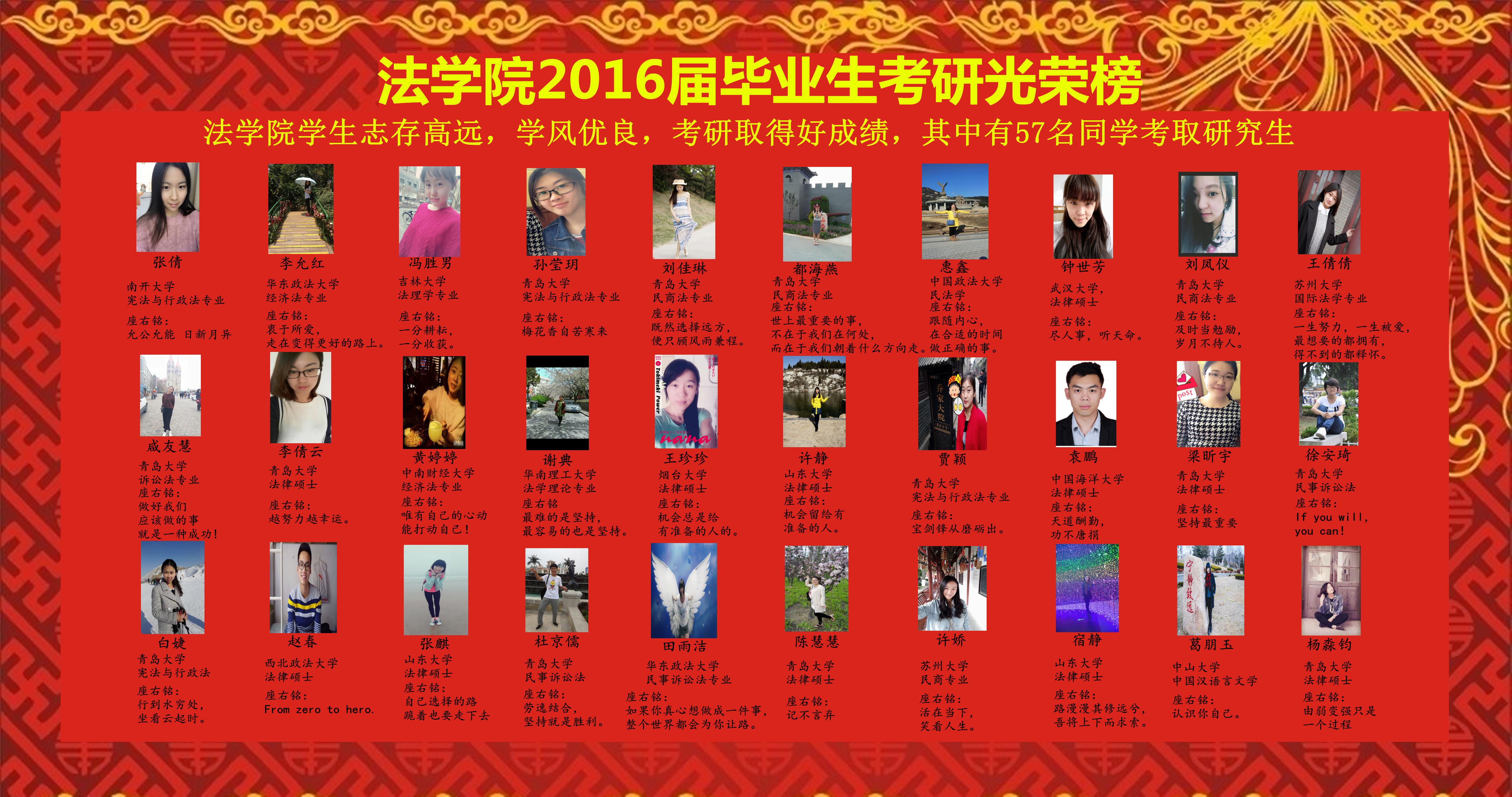 加拿大28预测软件 拥有优良的传统和浓厚的学风,2012级考研取的好成绩,平均考研录取率达31.5%,较去年提升2个百分点。有53%的考研同学考取了武汉大学、南开大学、中国政法大学、山东大学、中国海洋大学,北京理工大学、苏州大学、华南理工大学等“211”学校。